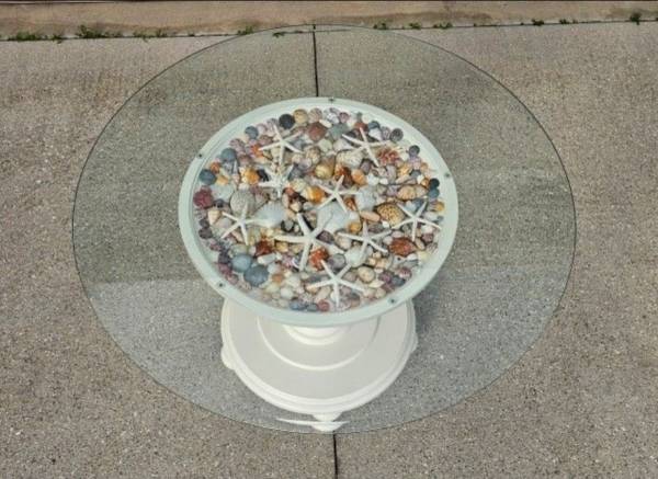 Bring a touch of Florida charm into your home with this beautiful glass-top table featuring elegant seashell décor beneath the glass surface. A perfect centerpiece for any coastal or beach-inspired space!