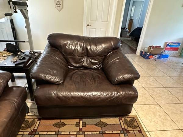 Leather sofa and oversized chair for sale. Very good condition. Selling due to death in the family. Asking $500.00 obo