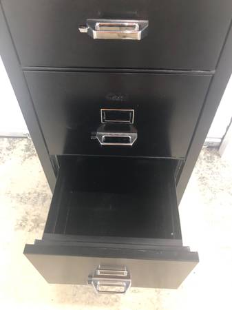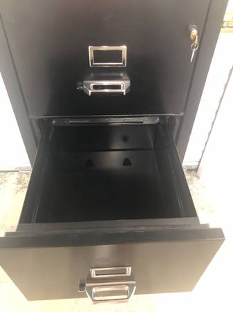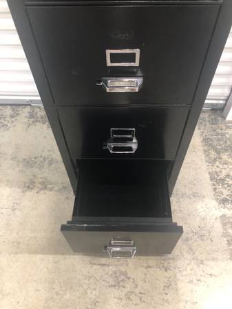 Fireproof Black File Cabinet - Manufactured By HON / Fire King. Dimension are 21" inches in width, 25" inches in depth, 53" inches in height. Several available. All of these fireproof file cabinets are in excellent condition and look like they are brand new. $475 per cabinet. Currently these cabinets are being stored in our storage unit in Osprey, Florida.