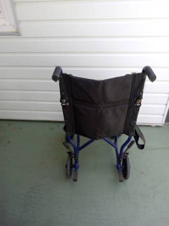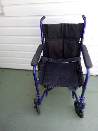 Like new blue lightweight 16"seat transport chair for sale $55. message for appointment must pick up for purchase in osprey.