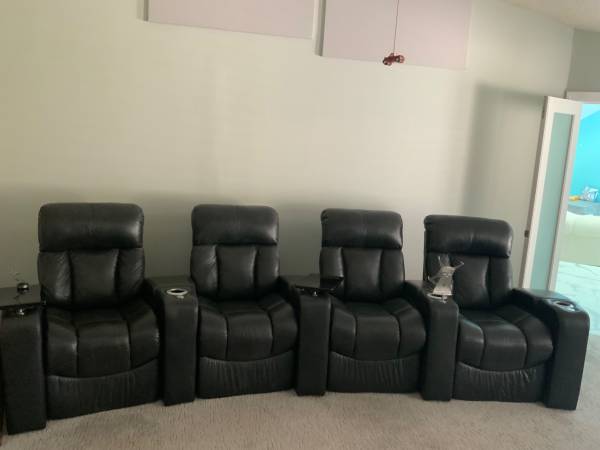 400 apiece, high end pure leather movie seats, lights, phone jacks, recline, electric. These are very high end seats. Will sell separately or as a package. Smoke free home, size is 42” High by 38”W...