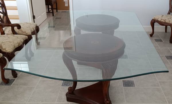 Very heavy and large Glass Table top. Dimensions are 52" X 92" X 1/2" Thick. Excellent shap. Beautiful edging and shape. See pictures. This is for the GLASS ONLY.