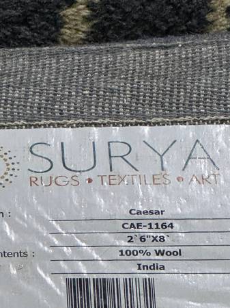 Click on the 'more ads by this user' link to see all of my items for sale Beautiful Transitional Surya Wool Runner - Like New - 2ft 6in x 8ft long We purchased this rug for a previous home and it...