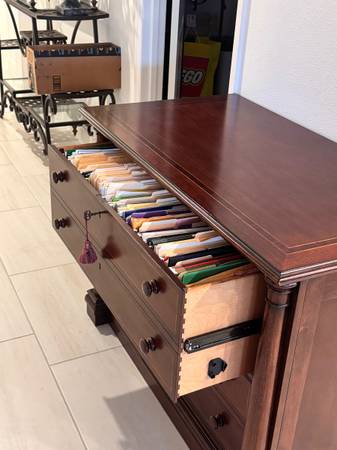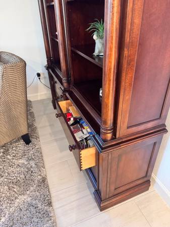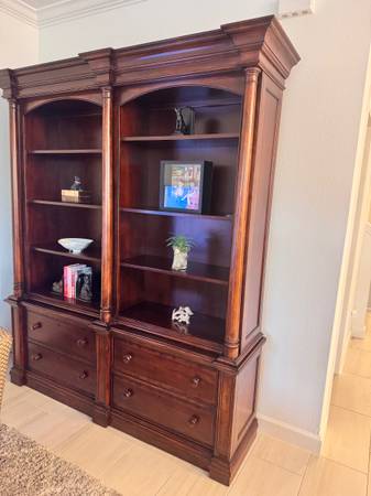 Made by Thomasville galleries this three-piece set includes desk, filling cabinet and bookshelf. Desk 72w x 36d x 33h Bookshelf 72w x 18d x 98h File Cabinet 44w x 24d x 33h