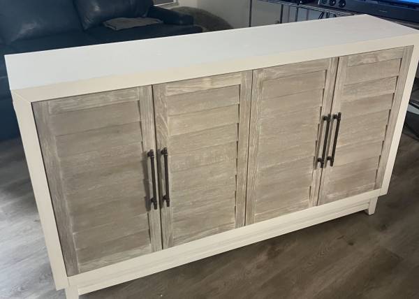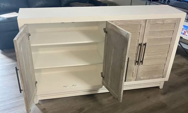 Coastal buffet with louvered doors