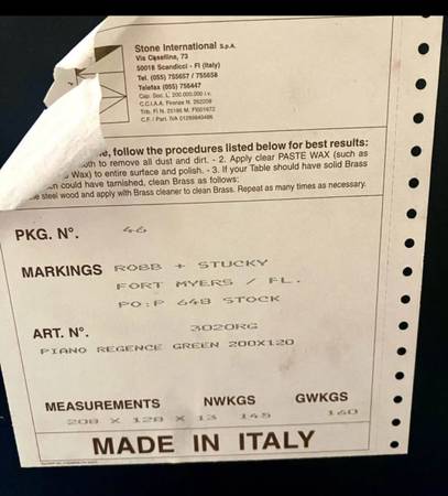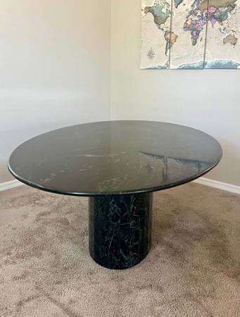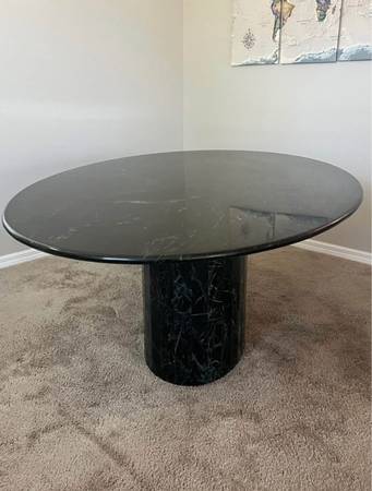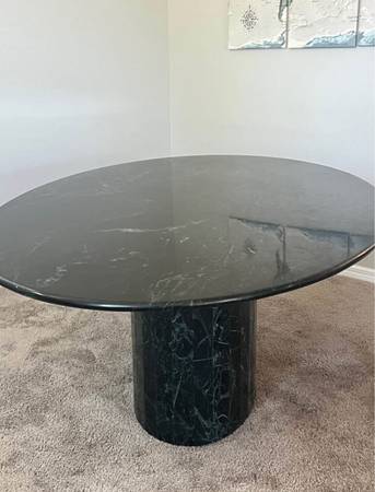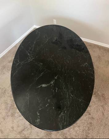 Post-modern Italian Green and White Oval Marble Dining Room Table. Oval Top with Marble fluted base. Made in and imported from Florence, Italy. One owner. Slight scratching on surface.