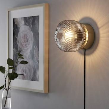 Set of 2 NEW IKEA Sconces/Wall mount light Like small jewels in shiny brass and gray clear glass, the lamps in the SOLKLINT series spread a soft mood light that creates exciting shadows on walls and...