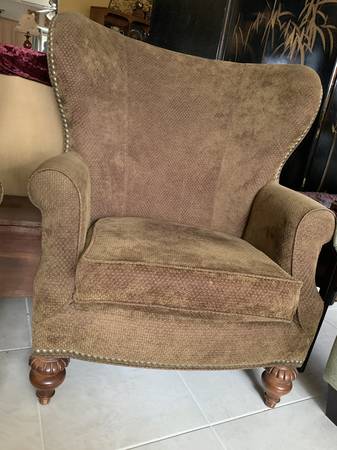 Neutral brown colors, 7 years old large wing armchairs by Thomasville. From pet-free home. Sold together.