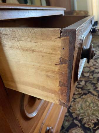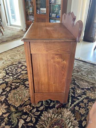 Antique 19th Century Small Walnut Three Drawer Chest Commode. Makes a great End Table or large Nightstand as well. Three dovetailed drawers with turned wood knobs. Similar chests from this period are selling online $1500 on up as shown. It measures 28.5 inches wide 16.5 inches deep 34 inches tall to the top of the backsplash and 29 inches to the table top. Beautiful condition.