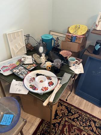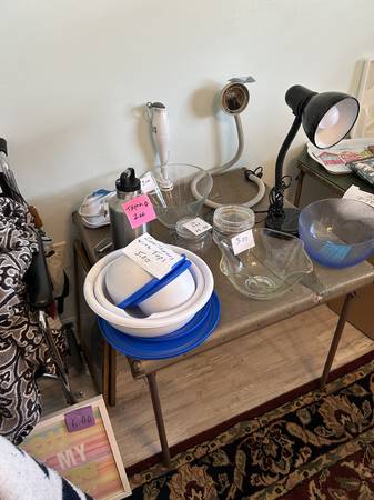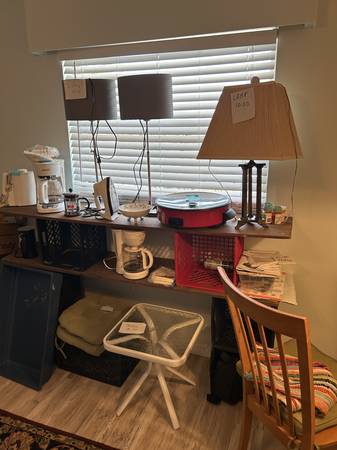 All kinds of furniture and household items, from couches to coffee makers, books to lamps.. Hopefully something for everyone. Also, collectibles, Fiesta Pottery, with Go Along Items, Hummel Nativity Se and plates