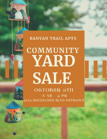 Come one, come all to the Beautiful Banyan Trail Apartments for a fun-filled Community Yard Sale! Browse a wide variety of treasures β from furniture, clothes, and toys to books, and more. Thereβs something for everyone!