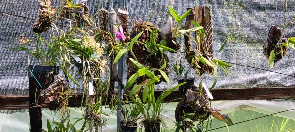 Whether for yourself or as a gift we have a good variety of tropical plants that are low maintenance easy care plants. They a perfect Desktop or Tabletop size. great for those with limited space. Many do well in most any room indoors or here in Florida perfect patio plant. Price reduced to $10 on many all in 4" nursery pots. See 1st photo, Calathea Dottie. 2nd Alocasia Black Velvet, 3rd Alocasia Silver Dragon, 4th Purple Waffle, 5th Native Sword fern, Boston Fern, 6th Athurium Jambo Red, 7th Staghorn Fern, 8th Cryptanthus Absolute Zero, 9th Cryptanthus Living Colors Red Barron, 10th Crown of Thorns, various kinds and colors. Any of these now just $10 each. Remaining photos are of some of the other larger floor plants or in ground plantings and also pics of orchids that are now available at wholesale price. WE have BS and NBS in 2" pots ready to be mounted or potted up at $5 for five pack, many other orchids in 4" pots also reduced to wholesale $10 price. Plus, a variety of orchids mounted on Driftwood, Cork bark or Coconut portion.