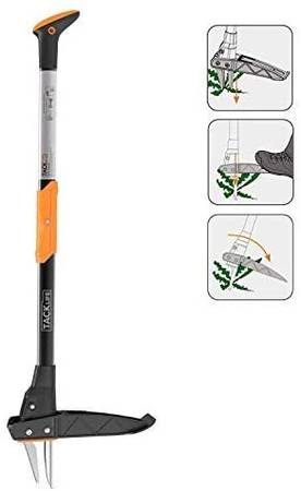☘ 39 INCH HIGH EFFICIENCY THREE CLAW DESIGN - Tacklife Stand-up weeder uses a special three-knife design that enhances stability. The 39-inch-high handle allows you to eliminate weeds don't squat and bend down, Can help you eliminate the pain caused by knee and back pain. The foot pedal allows you to exert enough force on the herbicide to penetrate the ground and grab the entire weed. Ideal for permanently removing dandelions, thistles and other invasive weeds. Easily remove weeds and roots, So