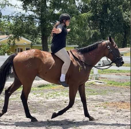 Rides Western and English is forward but sensible would make fantastic speed or x country horse! Milo aka March Magic has been off track for two yrs let down and the restarted last yr by 14yo. Trailride’s fantastic , trailers and ties to trailer. He’s a perfect boy just needs an experienced adult to enjoy him. Only selling due to needing space. Sarasota $5k 9:4,1.30’3.2,5’3,4