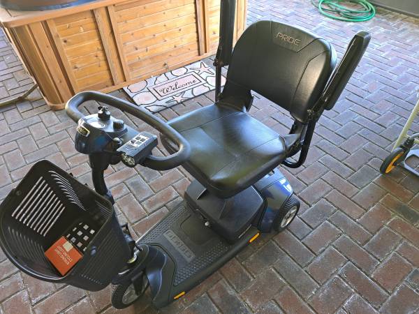Pride Go-go Elite Traveler 3 wheel scooter, in good shape, new batteries, 300lb weight capacity, max speed 4mph, mileage range 7.2 miles. Needs to go, no longer needed. It is about 2 years old. Blue...