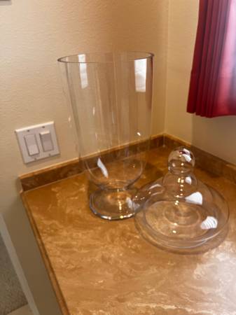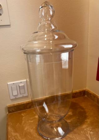 23” glass apothecary jar with lid.. Great for bath bombs or sea salt scrub salts with scooper even beautiful with nothing in it.