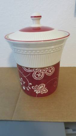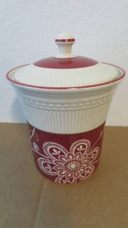 This Canister has stunning colors and a positive flexible air tight seal to keep your food fresh. Meriebeth Design pattern It holds a large amount and is beautifully made of Stoneware.
