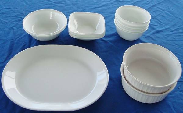 These are my unneeded/extra Corelle, Corning/Corningware, and a few Royal Norfolk dishes, and a nice dish draining rack. PLEASE tell me on your FIRST message WHICH pieces you're interested in, not just 'Is this available?' Prices START at $4, and everything is priced at the end of the descriptions. CASH ONLY, no payment apps. Click the 'more ads by this user' button to see my other items for sale, there's a wide variety.