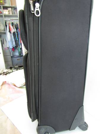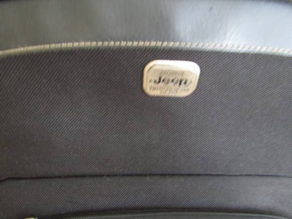 Suitcase by JEEP Black fabric SPINNER bag, Measures 26" x 17" x 11" deep. Good Working condition, handles, wheels and jippers work perfectly. Some scuffs to outside. Interior is super clean. Smoke...