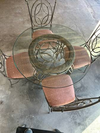 Glass table metal 4 chairs Glass : ½ inche tick Diameter: 44 inches