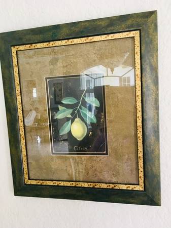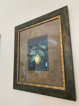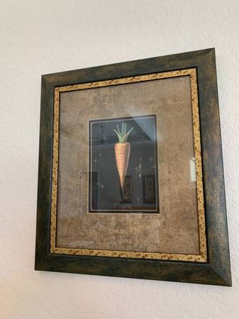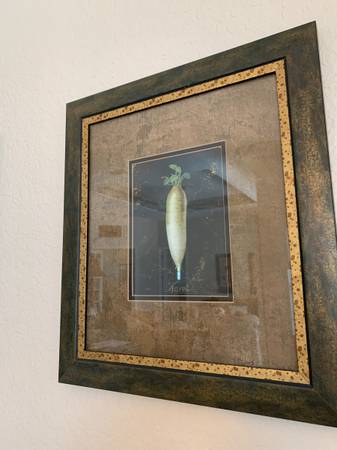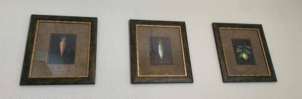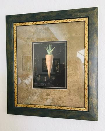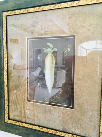Three lovely prints, beautifully framed in dark green, with French names for vegetables: