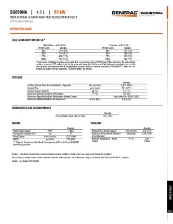 New, unused Generac Model SG050NA 120/208 3 phase commercial generator 50kW/63kVA 167 Amps. Runs on natural gas. Generator only, no automatic transfer switch.
