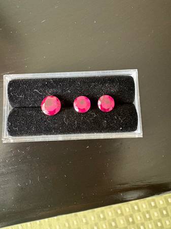 Ruby’s for sale, over 4 carat total ,rubys weight .(3stone total) uv light reflection with pictures, good 3 stone for jewelry asking price 200$ per carat, no idea natural or lab grown!