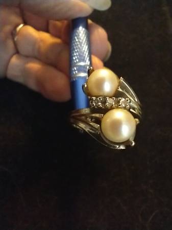 38 DAYS TILL CHRISTMAS. 14KT WHITE GOLD PEARL & DIAMOND BYPASS RING - $685 (SOUTH VENICE)