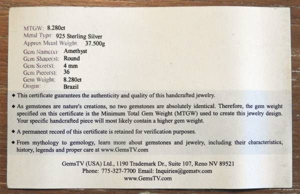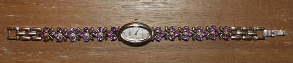 LADIES WATCH - 925 STERLING SILVER & AMETHYST WATCH. LIKE NEW CONDITION, AND INCLUDES A NEW BATTERY. 36 QTY 4 MM AMETHYST WITH 8.280 TOTAL CARATS. 37.5 GRAMS 925 STERLING SILVER.
