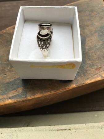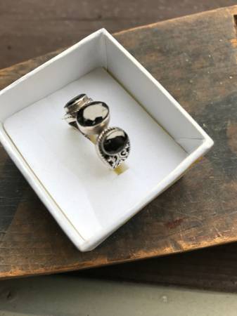 Silver Shungite 3 stone ring, 2 ctw, size 6
