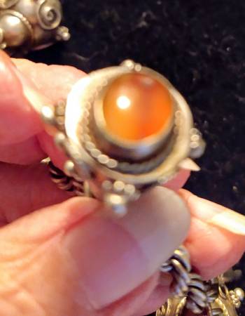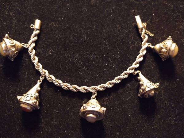 STERLING SILVER AND CARNELIAN AGATE AND SODALITE CHARM MIDEASTERN BRACELET