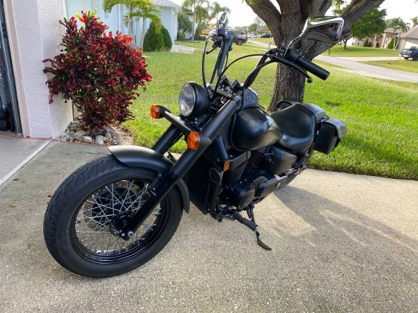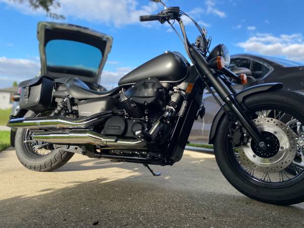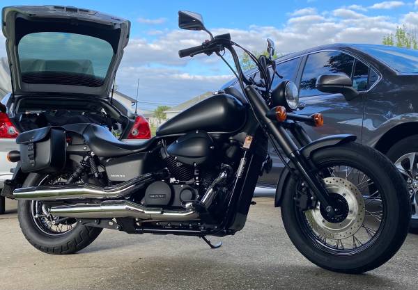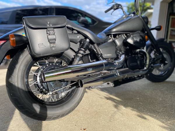 2018 Honda Shadow Phantom 750cc. No accidents. No drops. Nothing needs to be fixed or worked on. Runs like new. 2,400 miles. Always kept covered in garage. I’m the second owner. I bought it with 1,100 miles. 10” ape hangers. I also have the original bars. Locking leather soft saddle bags. Needs nothing!