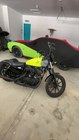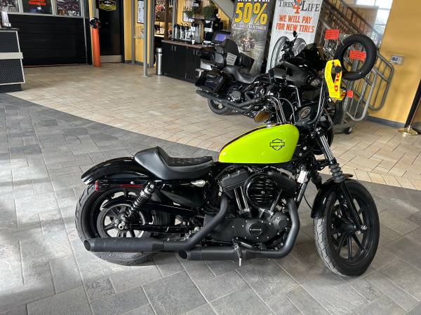 This 2019 Harley Davison sportster iron 1200 has 6300 some miles on it while taken care of paid high price from dealer, even though it has some scuffs on the battery cover and top of the left gas tank from previous owner dropping it their stickers on it, but they’re easily removed if you don’t want them Put Vance in Hines straight pipes or short shots as they call them cost 1000 the green is a gas tank shell bought from Harley Davidson cost 500 The black is the original color of the motorcycle