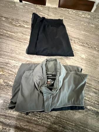 Harley Davidson Gray & Black rain gear, Jacket & Pants Size X-L. Kuryakyn Luggage and Rain cover, 3- pocket batwing fairing pouch. This came off of 2011 H-D Ultra Classic