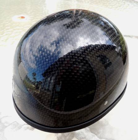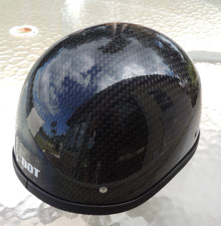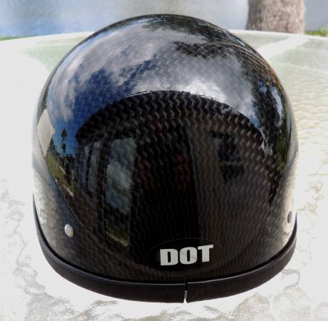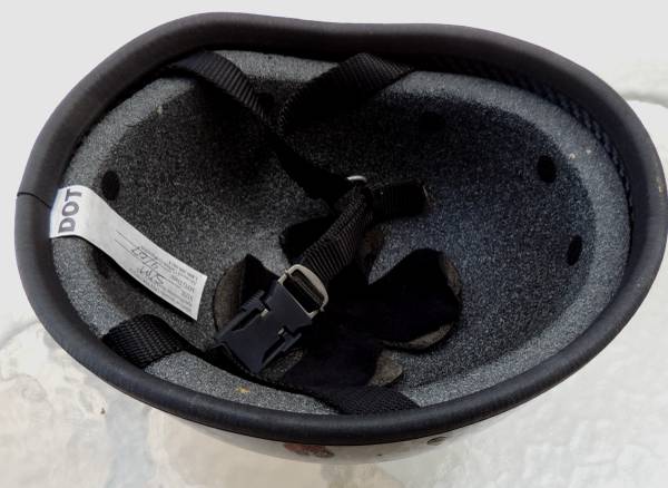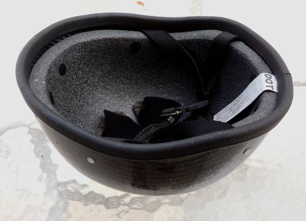 Includes "Motorcycle Helmet - DOT - Carbon Fiber - Black Grey - S-M." Tag says "S-M"... Small to Medium? It has button size velcro tabs for some type of liner or padding, I believe, but no liner included.