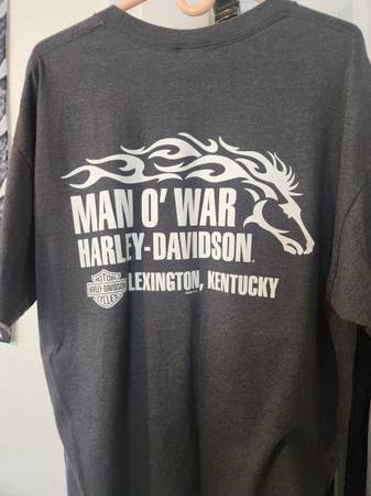 3 Harley T-Shirts. All good condition. No rips or frayed ends. No spots. Black is Large. Gray is XL the other black is L 20 each or all for 30