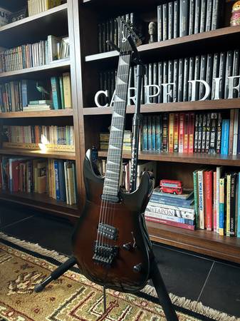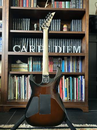This is a very rare guitar and in exceptional shape. I have included pics of the very minor superficial blemishes, but believe me: my pictures make the blemishes look worse than they are. Please note the pics of the blur near the bridge pickup and bridge. It is difficult to photograph and describe. It appears to be a very slight finish defect. You cannot feel it, it's just a very faint blur. You cannot even see it from most angles, and it is only barely visible when I hold it in that angle of reflection. Also, included are the headstock tools, the whammy bar, and a Charvel soft/firm case. Weight: 7.15 lbs.