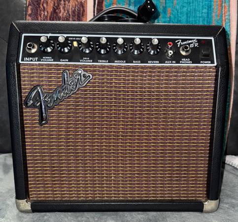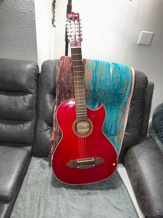 Rossetti 12string acoustic/electric guitar. Freshly buffed & polished, new strings, rosewood fretboard freshly oiled. Fender 15r Frontman New matching speaker cover cloth, electronics inspected and tested and new matching 10’ cord.