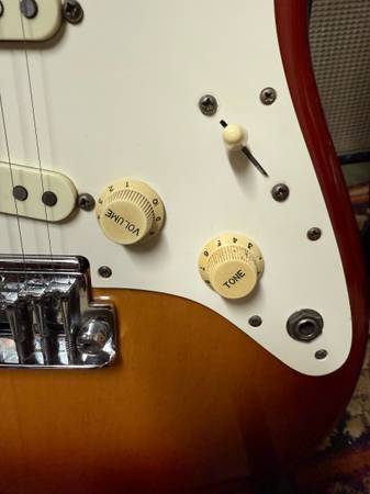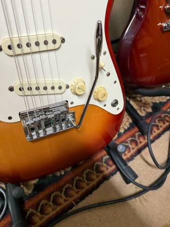 1983 Fender USA Strat. Excellent condition, original hard shell Fender case. One year only model with two knobs instead of three. Also included is original hard to find tremolo arm. Possible trade...