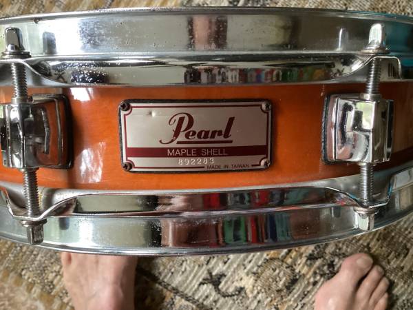 Pearl piccolo 13 inch snare drum. It has been used very little by me. I used it as a back up when I had problems with my regular snare during a gig. It would also be great on the other side of your high hat. It really pops, and would work well as your main snare. The serial number is 892283; for those that think that kind of stuff is important.