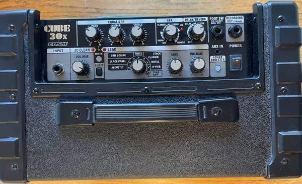 In very good condition and it has been well cared for. Great sounding, very versatile with many modeling sounds! Light weight, and amazing sounds and effects, and 10-inch speaker. Bring your guitar and plug in. It a fun amp for practice or small room settings.