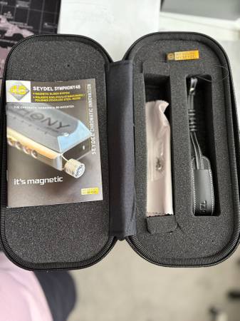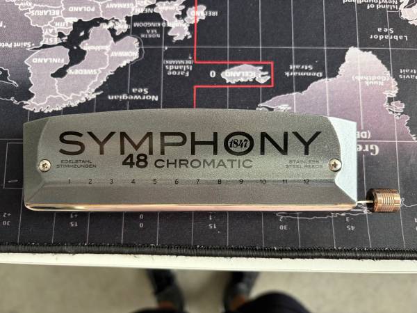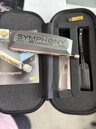 This harmonica is brand new. My wife bought it for me from my retirement months ago. I didn't play it. I went to playing drums so this is a brand new side Symphony 48 chromatic harmonica never been played. It's a great deal knew they're $700.