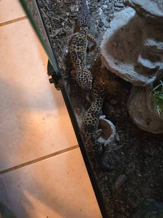 2 bearded dragons and 3 leopard geckos looking for new homes no terriums or lights available (selling separate) 2 leopard geckos have been housed together since babies for almost 4 years both very friendly . 1 leo. Has been house separately and this one is not nice .