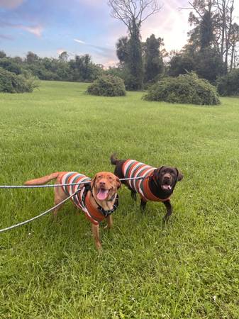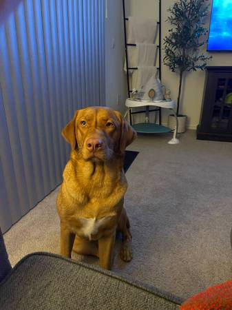 We unfortunately have to rehome our one year-old labrador. Her name is Sonny. She is very good with kids and pets. She is how strained she knows how to sit. She is a good walker. She is a good dog unfortunately our other Labrador had to have an ACL surgery and she wants to play as she should, but he can no longer be playing like that unfortunately, we have a small rehoming fee. Contact me for more information just to make sure she goes to a good home my phone number is show contact info
