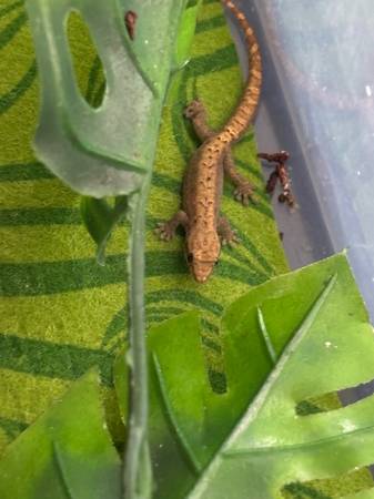 Rehoming three (3) cute young Mourning Geckos in temporary grow out enclosure. Rehoming fee of $75 includes current temporary enclosure, feeding cup & hide. pictures of examples.