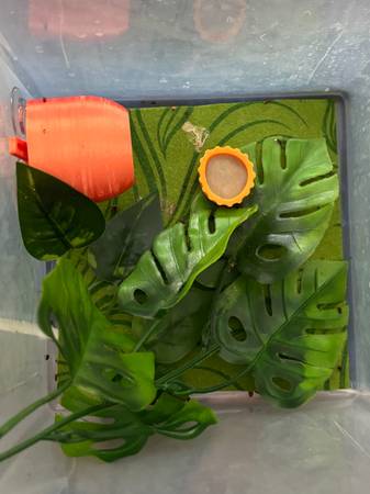Enclosure Size: They are in a 9x5 temporary enclosure. They will be ready for a new home by Christmas. A 10 gallon terrarium at minimum but the higer the better