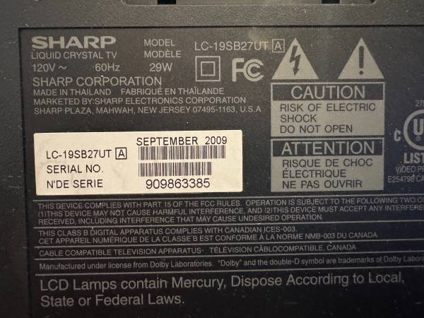 Sharp's LC-19SB27UT is a widescreen high definition LCD TV with a slim design and distinctive small footprint.