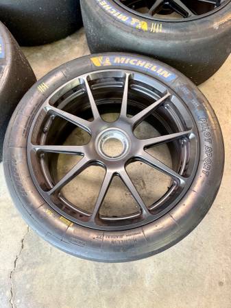 These wheels are for a 991.2 GT3/GT2 RS. Fronts are 19x10 and the rears are 19x12. They come with the TPMS sensors and tires on them. The tires are used Michelins Pilot Sport GT and have the possibility to get more life out of then depending on your driving style. Retail for the wheels alone is around 8,000 so offering a great discount for the wheels, tires, and sensors all in one package.