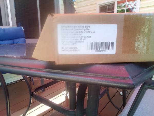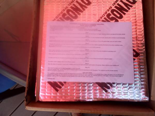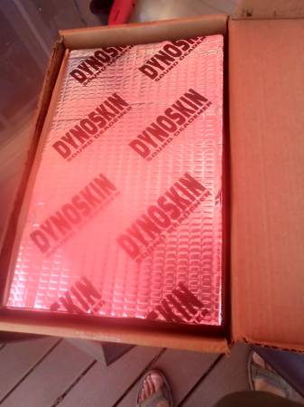 DYNOSKIN Car Sound Deadening Mat 80 mll. This material is wonderful for giving your car or truck a quiet ride by reducing road noise. 28 sheets of self backing Synod kin 9.84 x 15.75 inch. New in box. Cash Call five oh three eight eight seven 5881. Material is silver not red. Photos were taken under a red umbrella