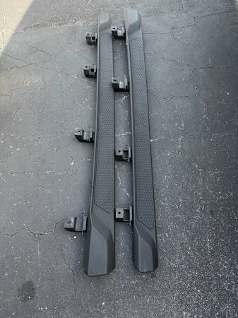 Used Jeep running boards in good overall condition. Includes mounting brackets.